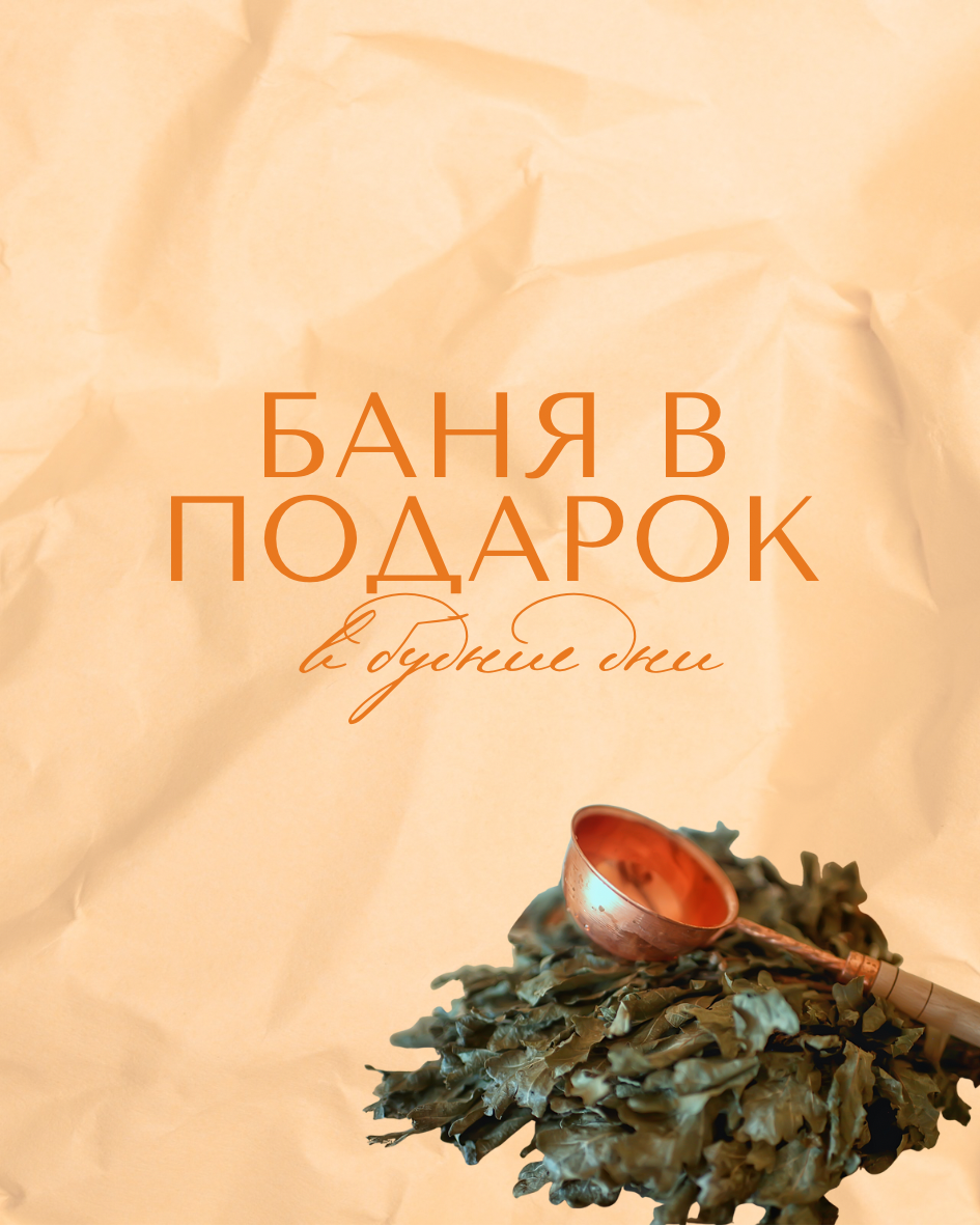 Бронируйте проживание на двое суток в будние дни и получите бесплатные 2 часа парения в бане. + Дополнительную скидку на проживание 20%